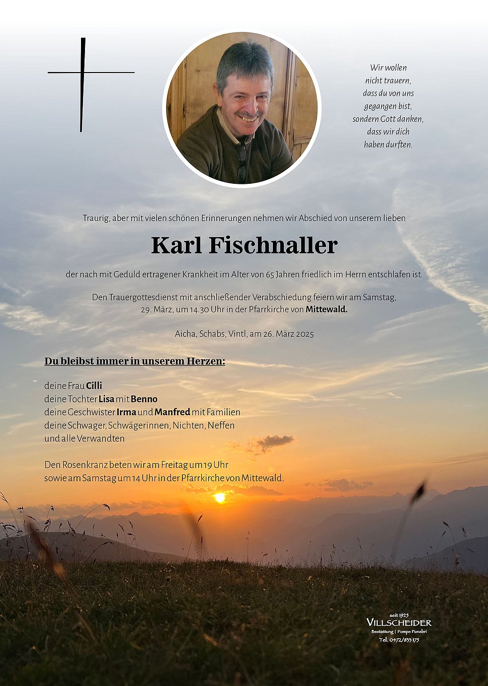 Liebe Cilly, liebe Lisa, liebe Trauerfamilie,