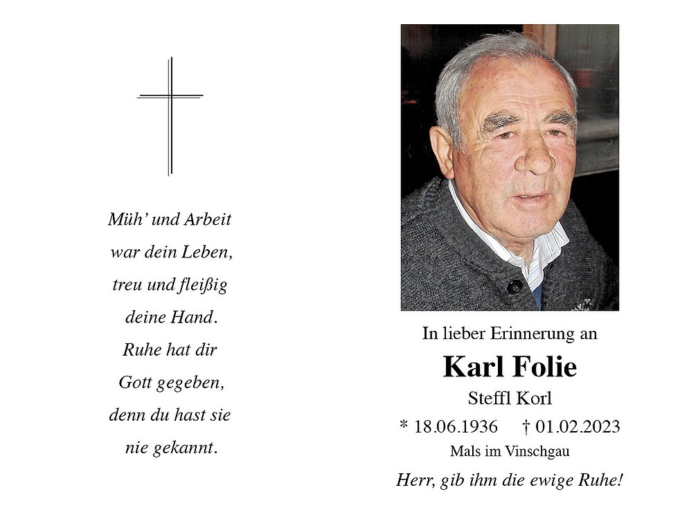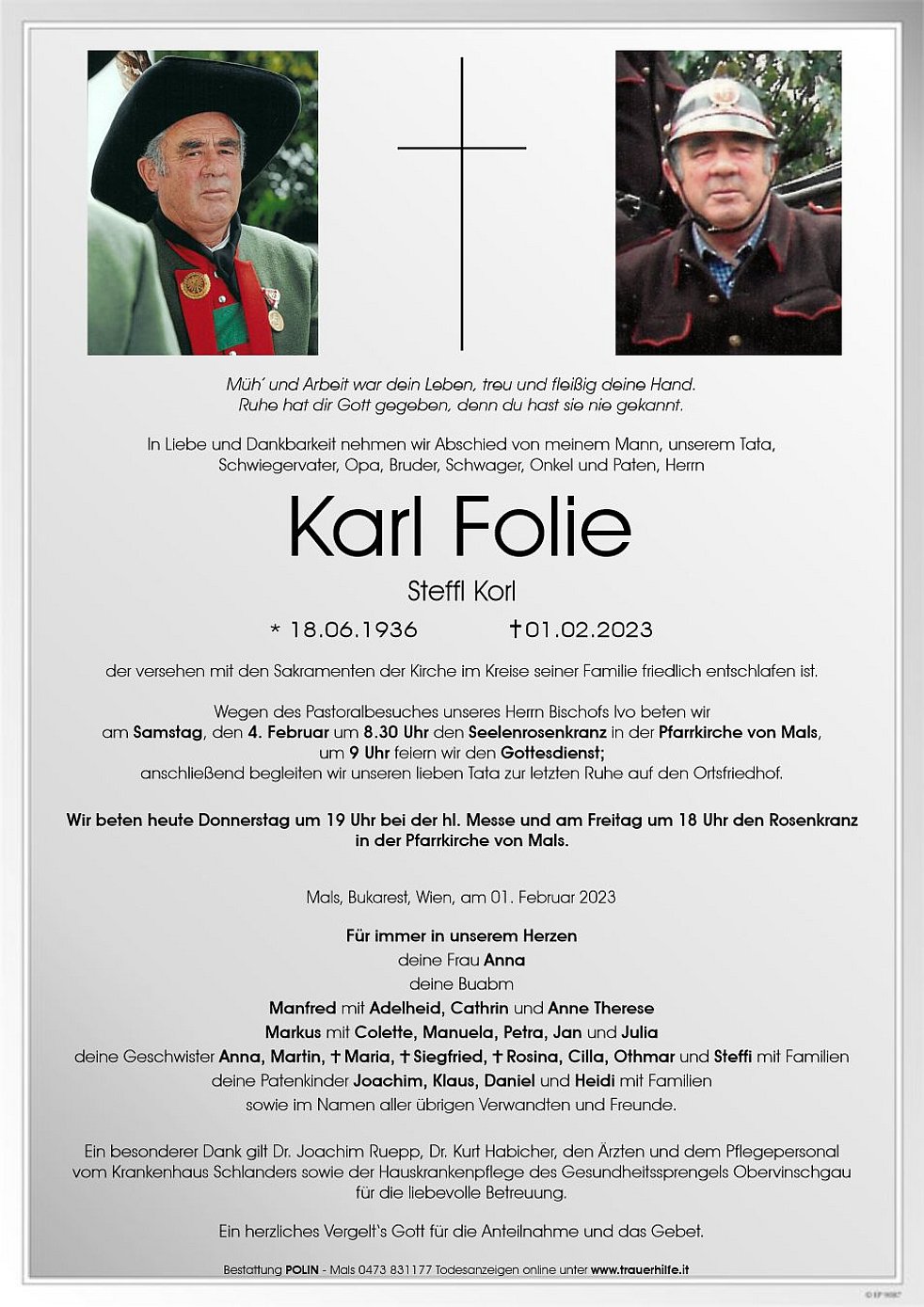 am Samstag, den 4. Februar um 8.30 Uhr den Seelenrosenkranz in der Pfarrkirche von Mals,