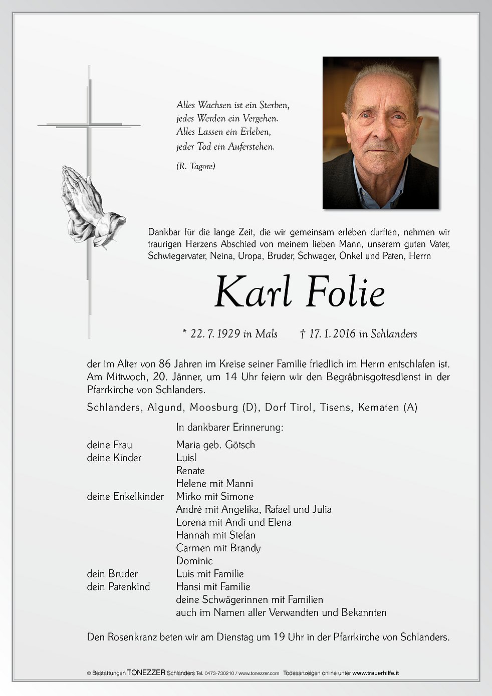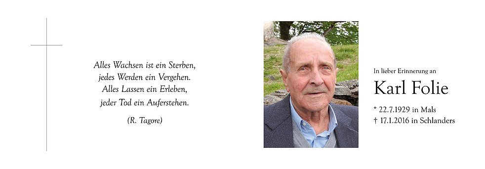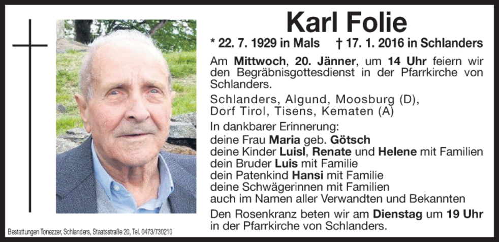 * 22.7.1929 in Mals † 17.1.2016 in Schlanders