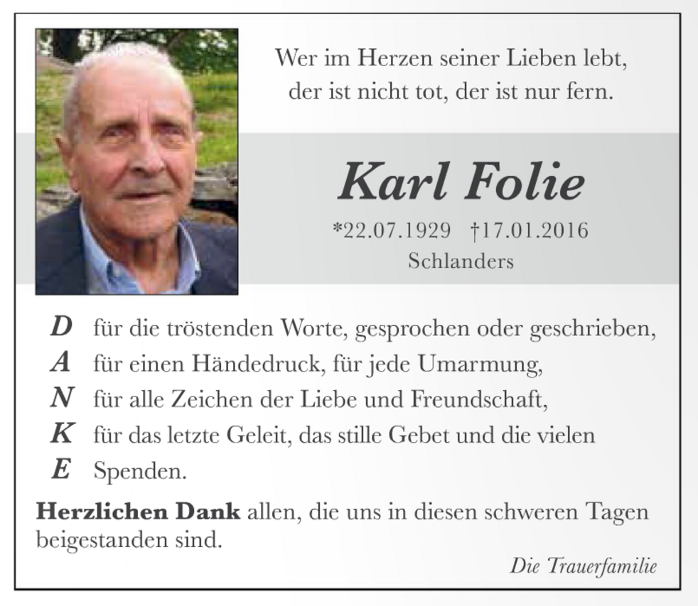 Dankbar für die lange Zeit, die wir gemeinsam erleben durften, nehmen wir traurigen Herzens Abschied von meinem lieben Mann, unserem guten Vater, Schwiegervater, Neina, Uropa, Bruder, Schwager, Onkel und Paten, Herrn