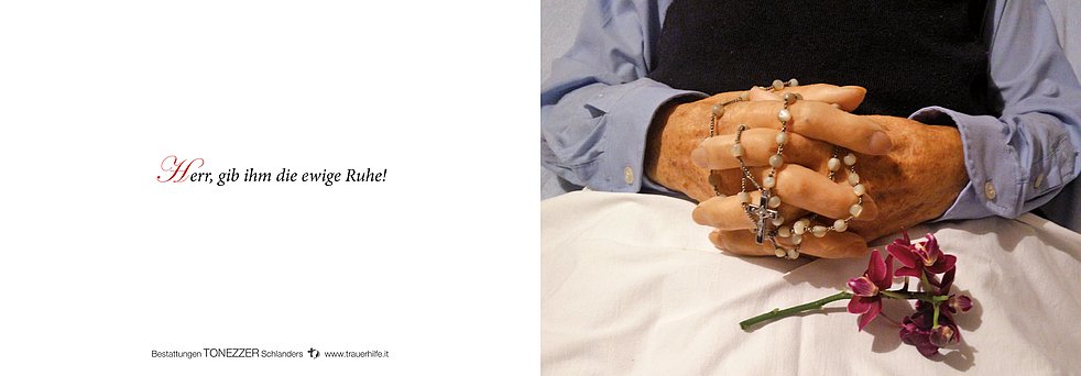 Am Mittwoch, 20. Jänner, um 14 Uhr feiern wir den Begräbnisgottesdienst in der Pfarrkirche von Schlanders.