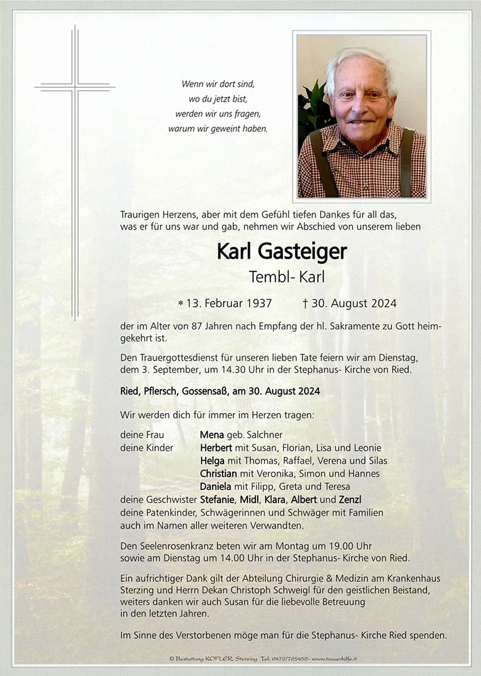 Im Sinne des Verstorbenen möge man für die Stephanus- Kirche Ried spenden.