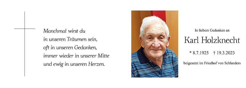 Am Dienstag, 21. März, um 14 Uhr feiern wir den Begräbnisgottesdienst mit anschließender Verabschiedung in der Pfarrkirche von Schlanders.