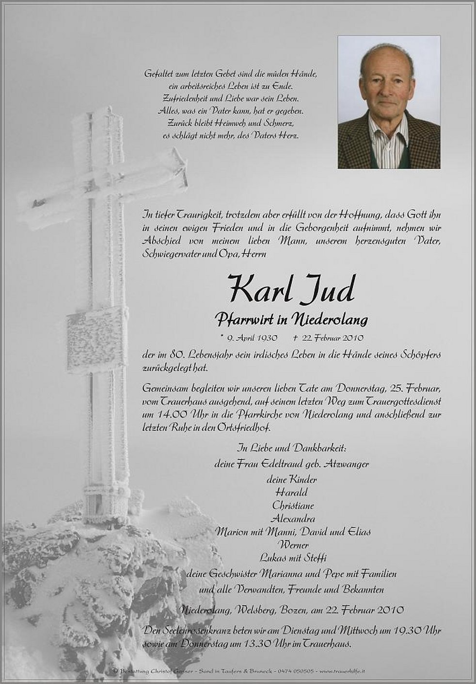 In tiefer Traurigkeit, trotzdem aber erfüllt von der Hoffnung, dass Gott ihn in seinen ewigen Frieden und in die Geborgenheit aufnimmt, nehmen wir Abschied von meinem lieben Mann, unserem herzensguten Vater, Schwiegervater und Opa, Herrn