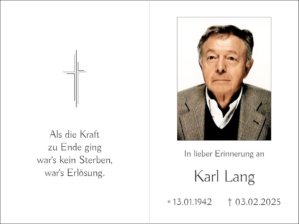 Den Trauergottesdienst mit anschließender Urnenbeisetzung feiern wir am Donnerstag, dem 20. Februar, um 14.30 Uhr in der Pfarrkirche von Oberinn.