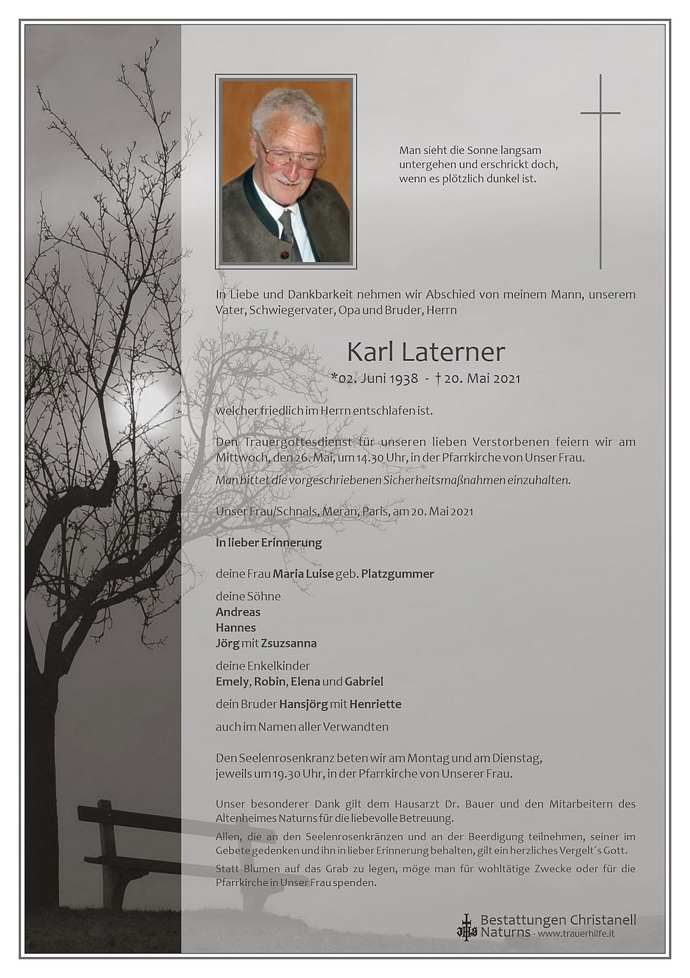 Unser besonderer Dank gilt dem Hausarzt Dr. Bauer und den Mitarbeitern des Altenheimes Naturns für die liebevolle Betreuung.