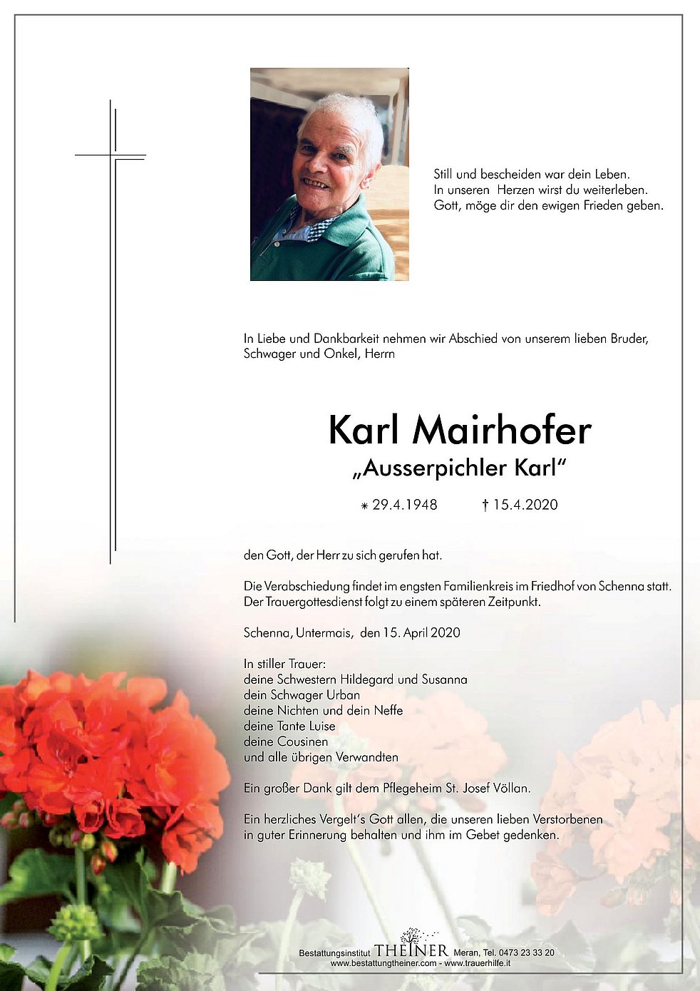Die Verabschiedung findet im engsten Familienkreis im Friedhof von Schenna statt.