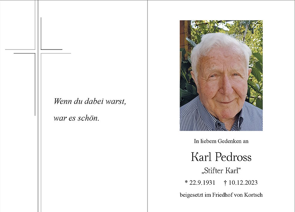 Ein besonderer Dank gilt dem Kranken- und Hauspflegedienst des Sprengels Mittel-vinschgau für die liebevolle und fürsorgliche Betreuung.