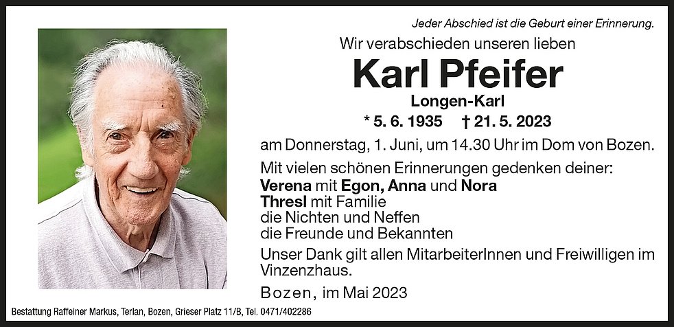 am Donnerstag, 1. Juni, um 14.30 Uhr im Dom von Bozen.