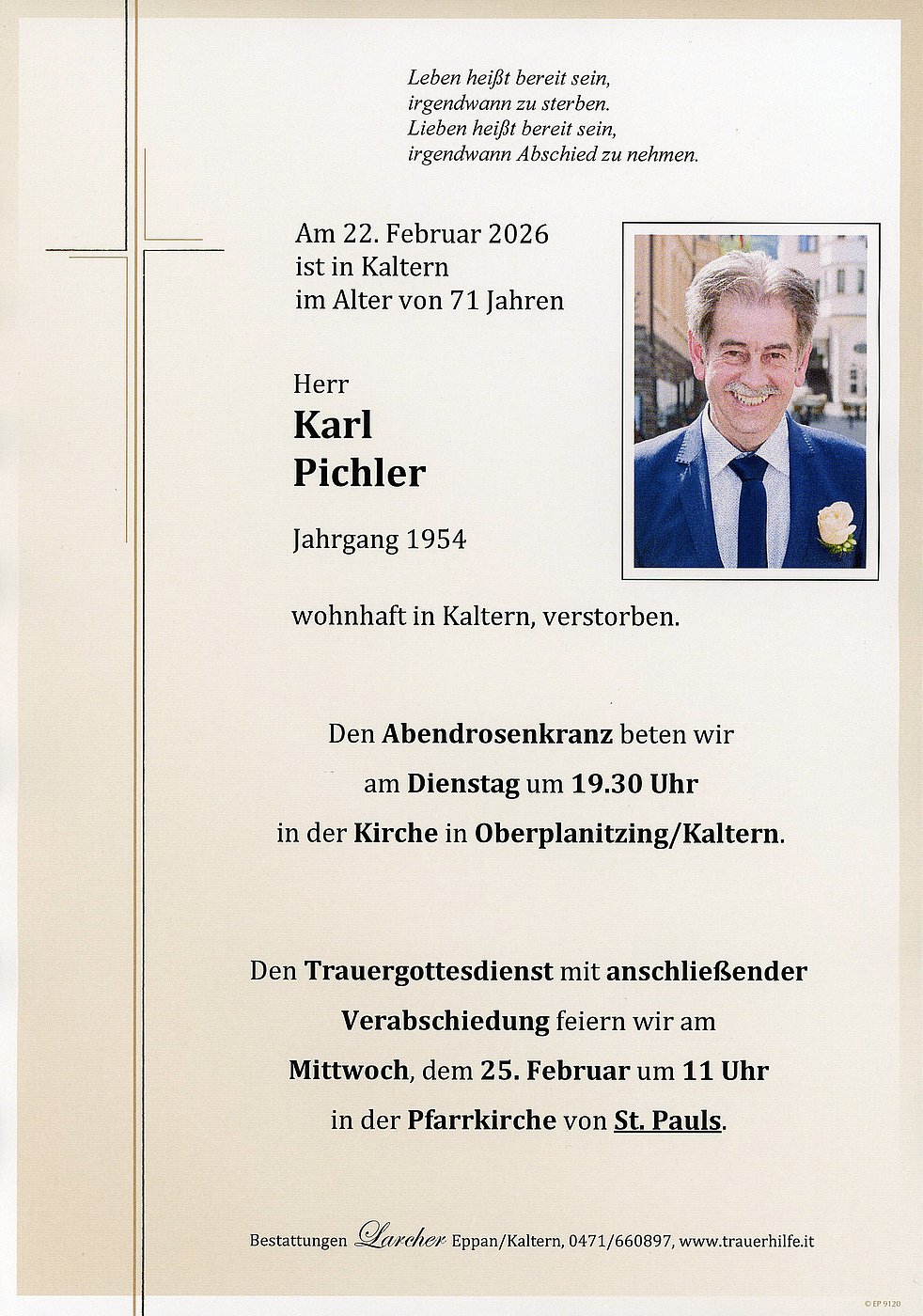 Den Trauergottesdienst mit anschließender Verabschiedung feiern wir am Mittwoch, dem 25. Februar um 11 Uhr in der Pfarrkirche von St. Pauls.