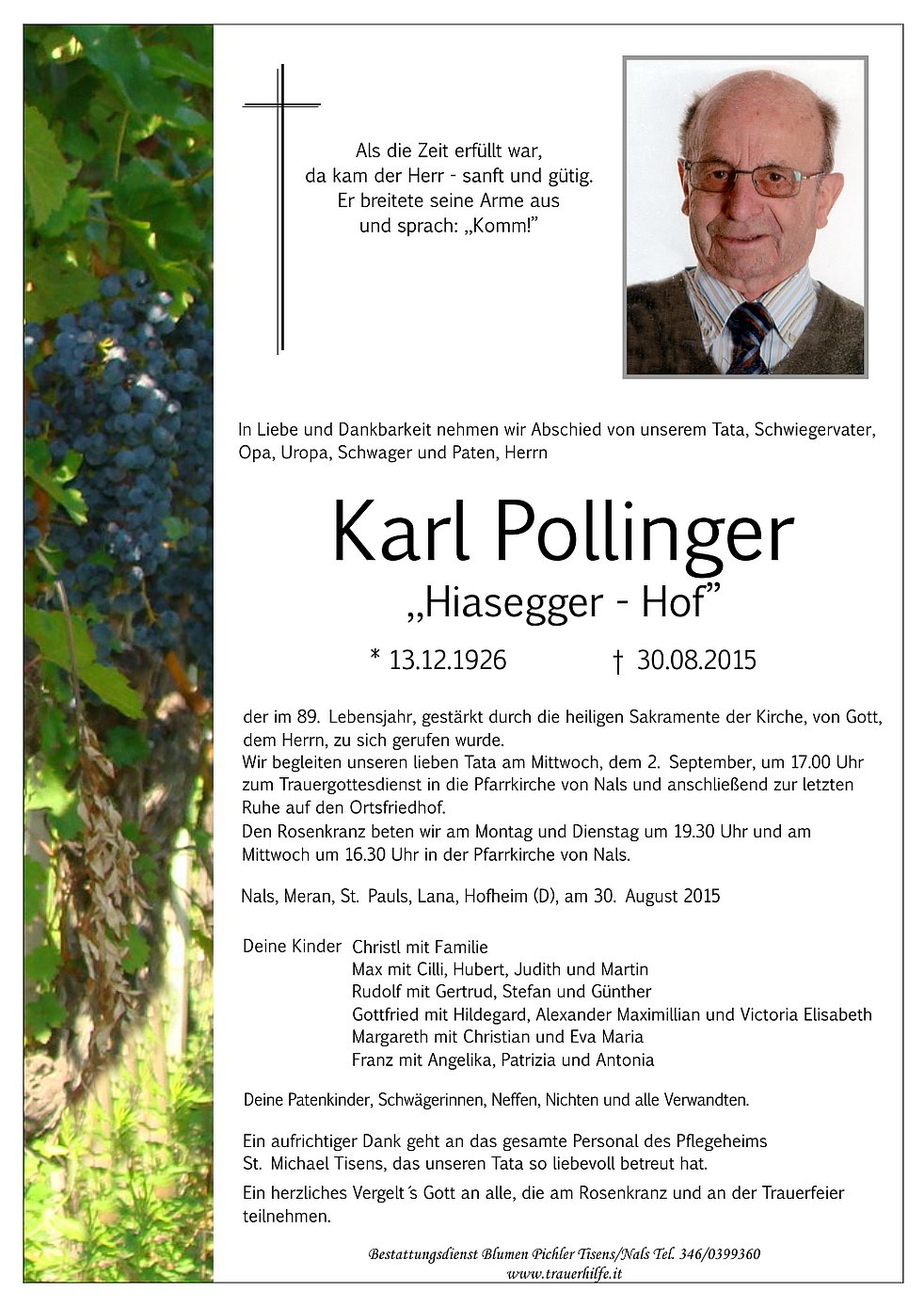 zum Trauergottesdienst in die Pfarrkirche von Nals und anschließend zur letzten