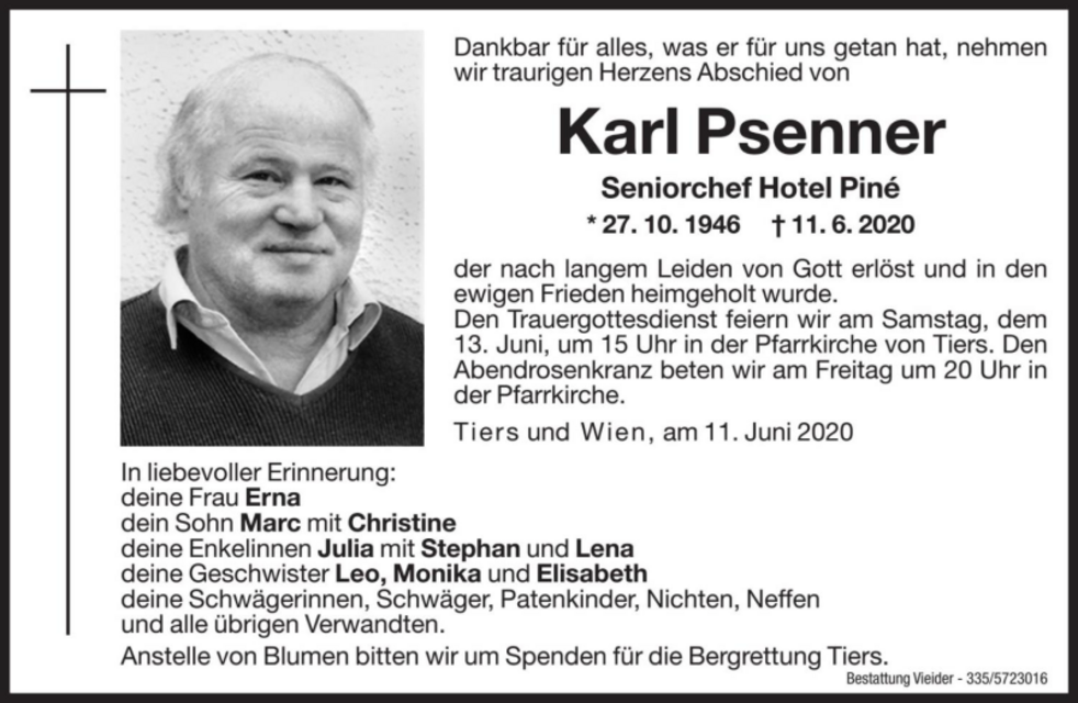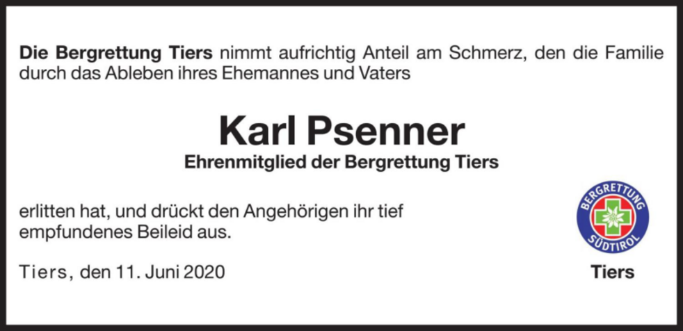 Anstatt Blumen bitten wir um Spenden für die Bergrettung Tiers.