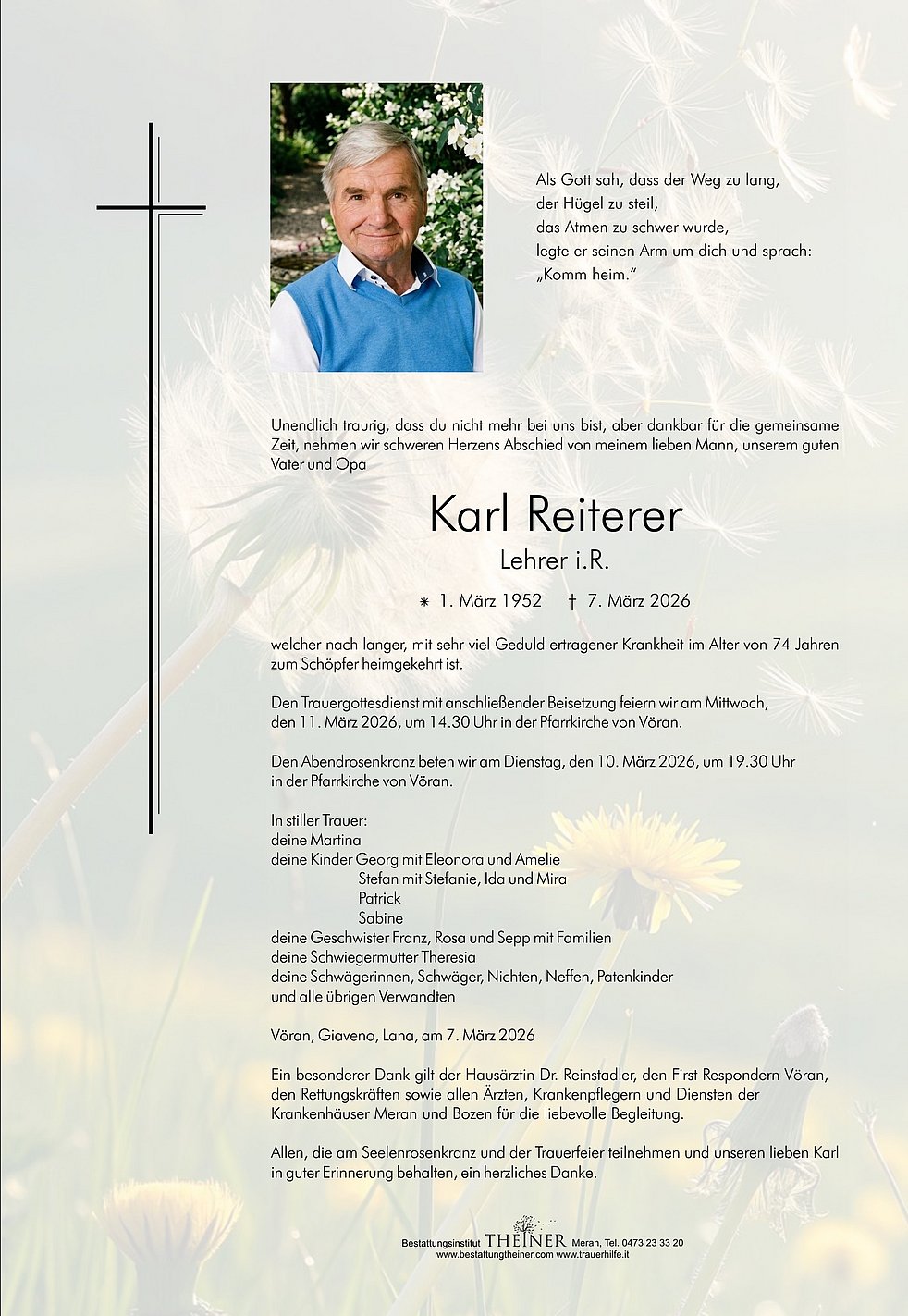 welcher nach langer, mit sehr viel Geduld ertragener Krankheit im Alter von 74 Jahren zum Schöpfer heimgekehrt ist.