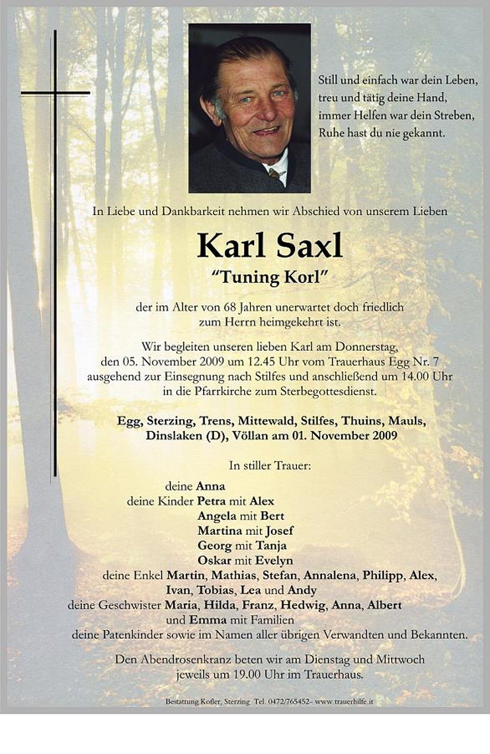 Wir begleiten unseren lieben Karl am Donnerstag, den 05. November 2009