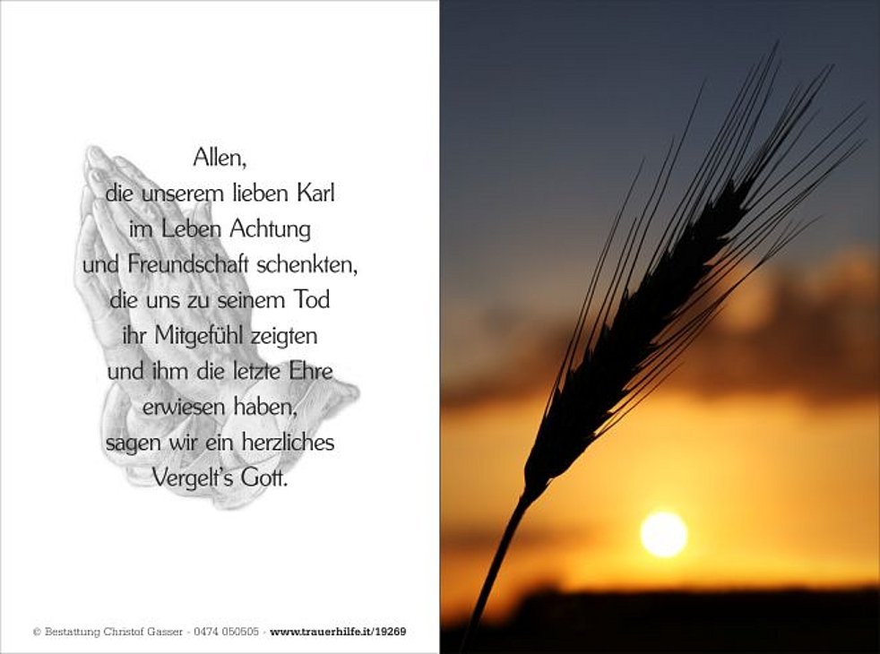 Danke allen, die seiner im Gebet gedenken und unseren Karl in liebevoller Erinnerung behalten.