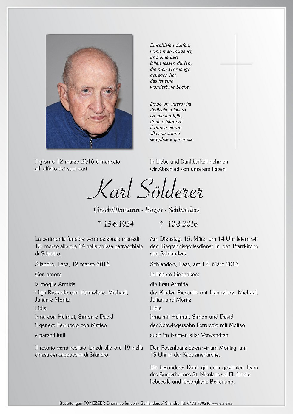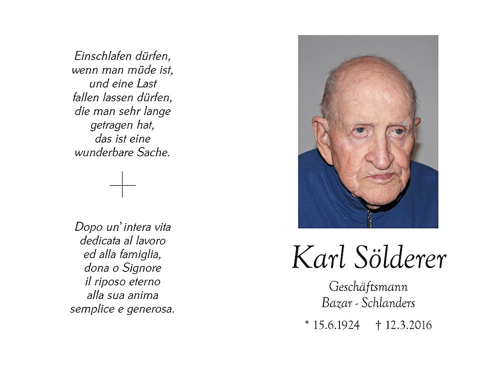 Am Dienstag, 15. März, um 14 Uhr feiern wir den Begräbnisgottesdienst in der Pfarrkirche von Schlanders.