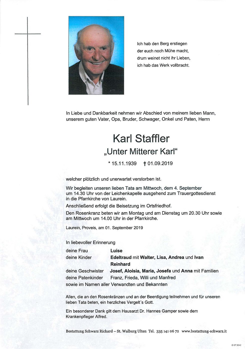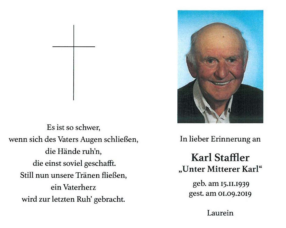 Begräbnisgottesdienst: 04.09. - 14:30 Uhr Pfarrkirche Laurein