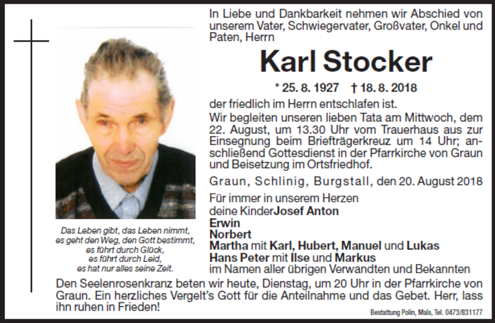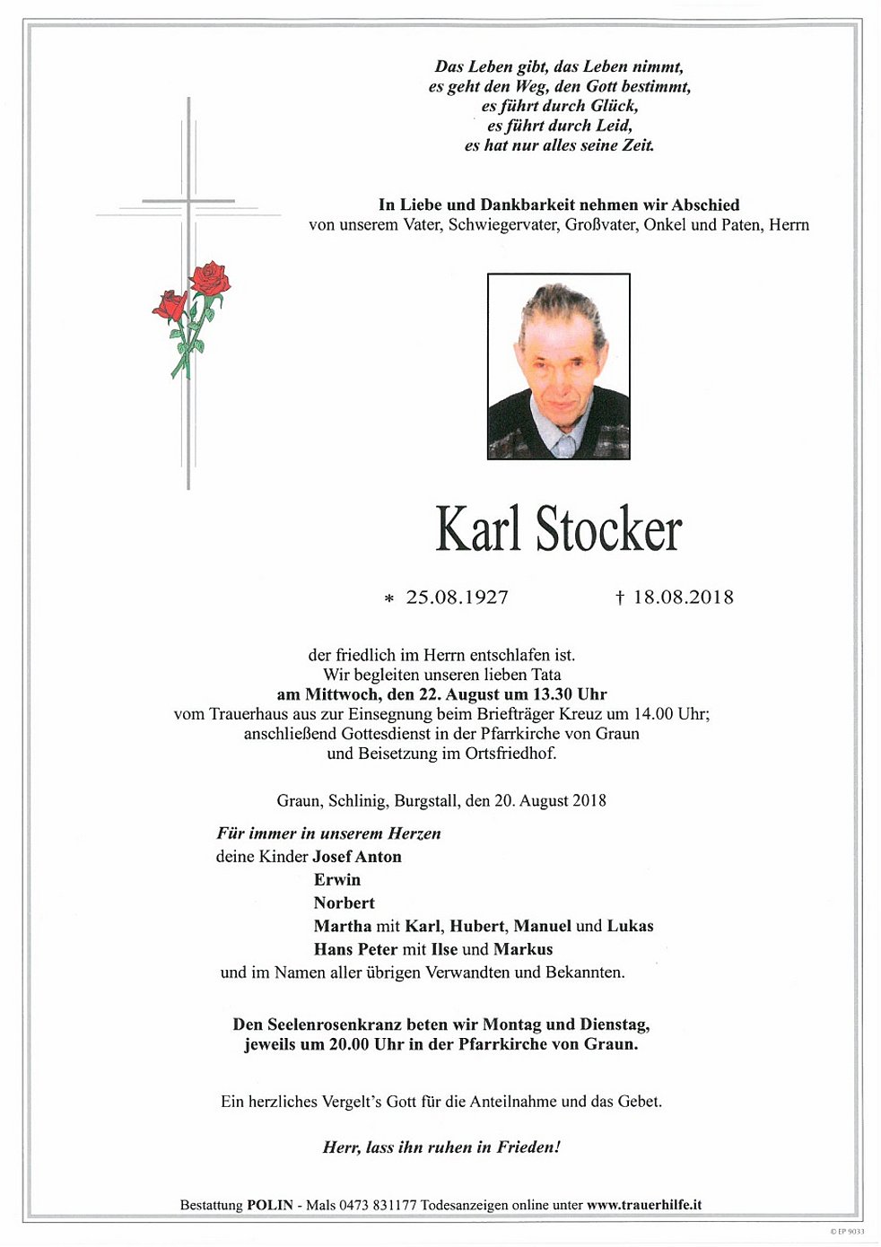 vom Trauerhaus aus zur Einsegnung beim Briefträger Kreuz um 14.00 Uhr;