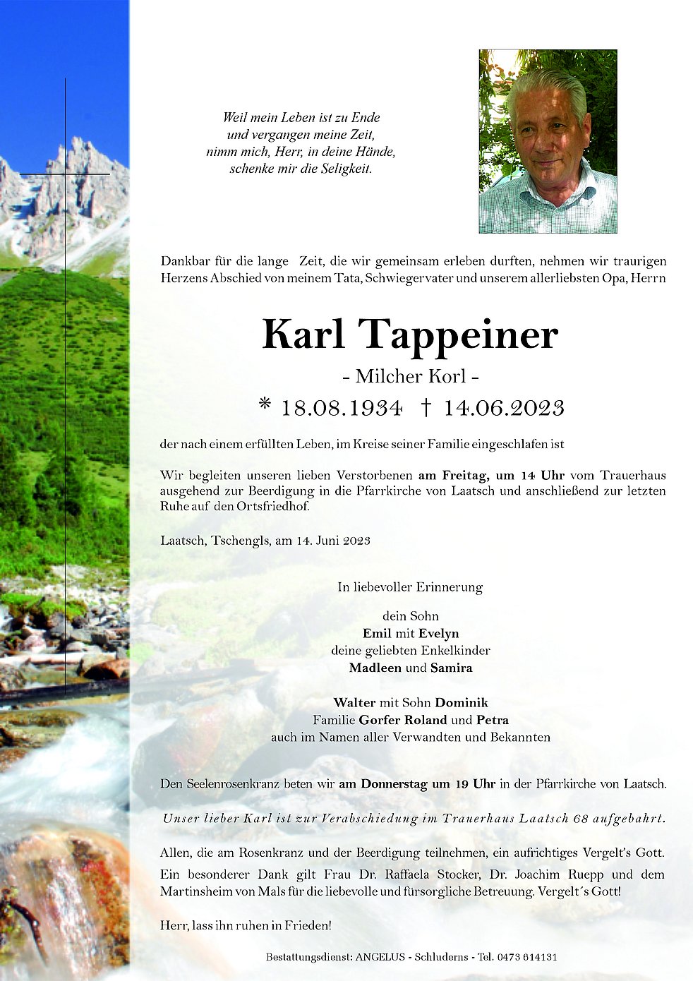 Ruhe sanft in Engels Hand,lieber Karl miar wearn die fest in Erinnerung koltn