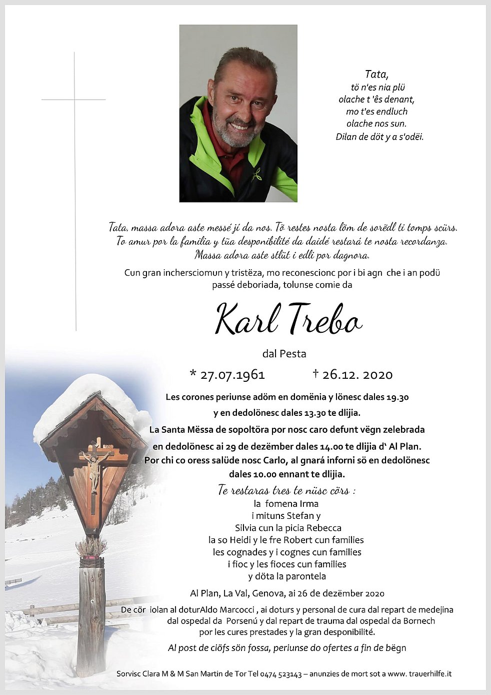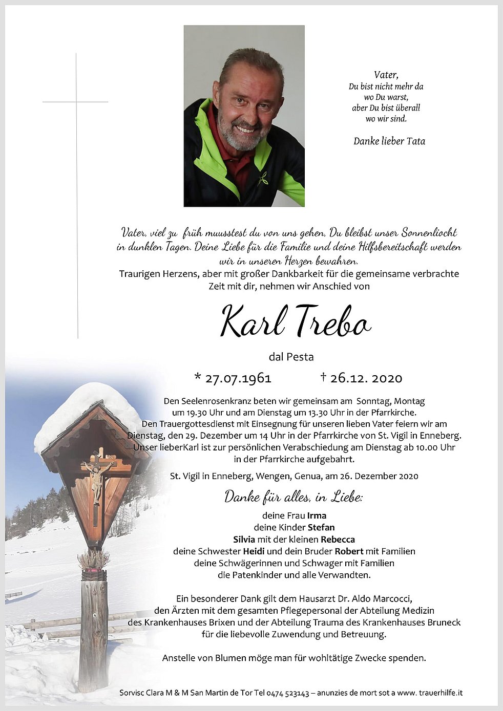 Den Trauergottesdienst mit Einsegnung für unseren lieben Vater feiern wir am Dienstag, den 29. Dezember um 14 Uhr in der Pfarrkirche von St. Vigil in Enneberg.