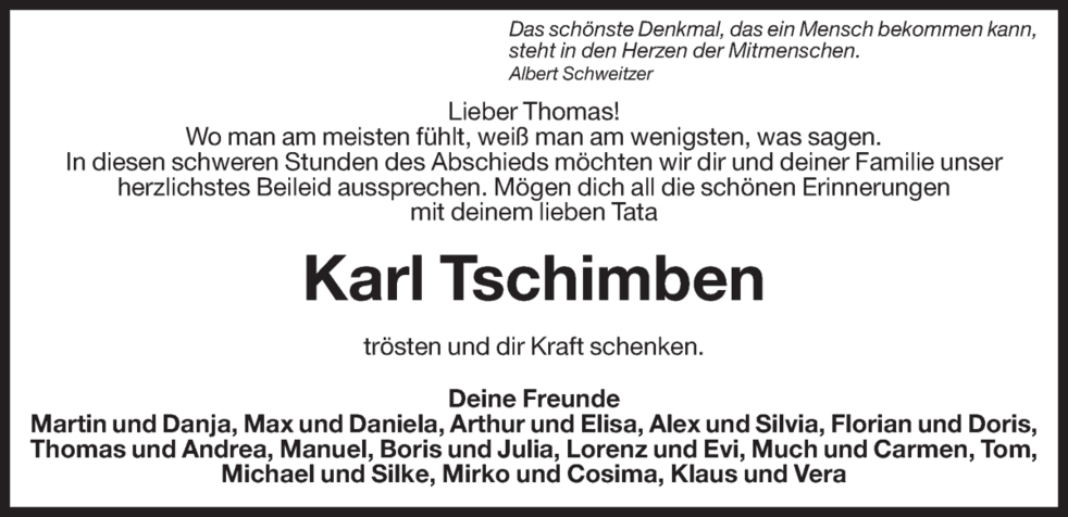 Es ist schwer bei einem solchen Anlass tröstende Worte zu finden, aber wir möchten Euch unsere herzliche Anteilnahme aussprechen und Euch viel Kraft und Zuversicht wünschen.