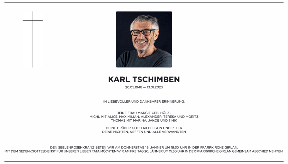 Wer so gewirkt wie Karl im Leben, wer erfüllte seine Pflicht und stets sein Bestes hat gegeben, der stirbt auch im Tode nicht.