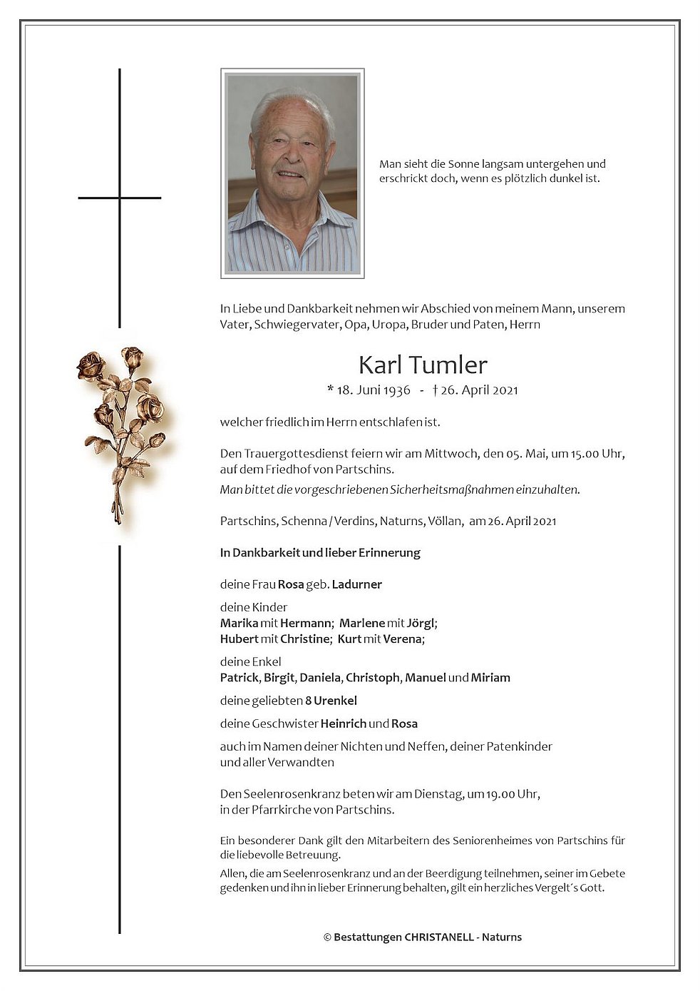 Den Trauergottesdienst feiern wir am Mittwoch, den 05. Mai, um 15.00 Uhr, auf dem Friedhof von Partschins.