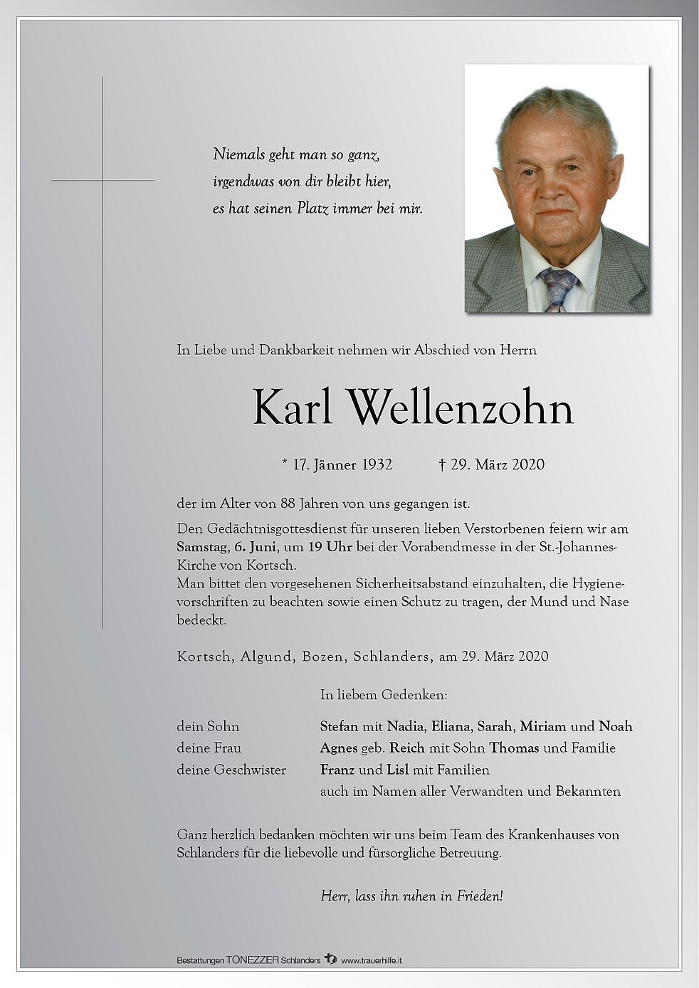Den Gedächtnisgottesdienst für unseren lieben Verstorbenen feiern wir am Samstag, 6. Juni, um 19 Uhr bei der Vorabendmesse in der St.-Johannes-Kirche von Kortsch.