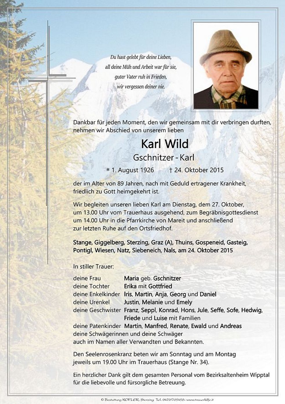 Wir begleiten unseren lieben Karl am Dienstag, dem 27. Oktober,