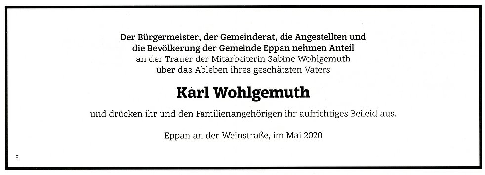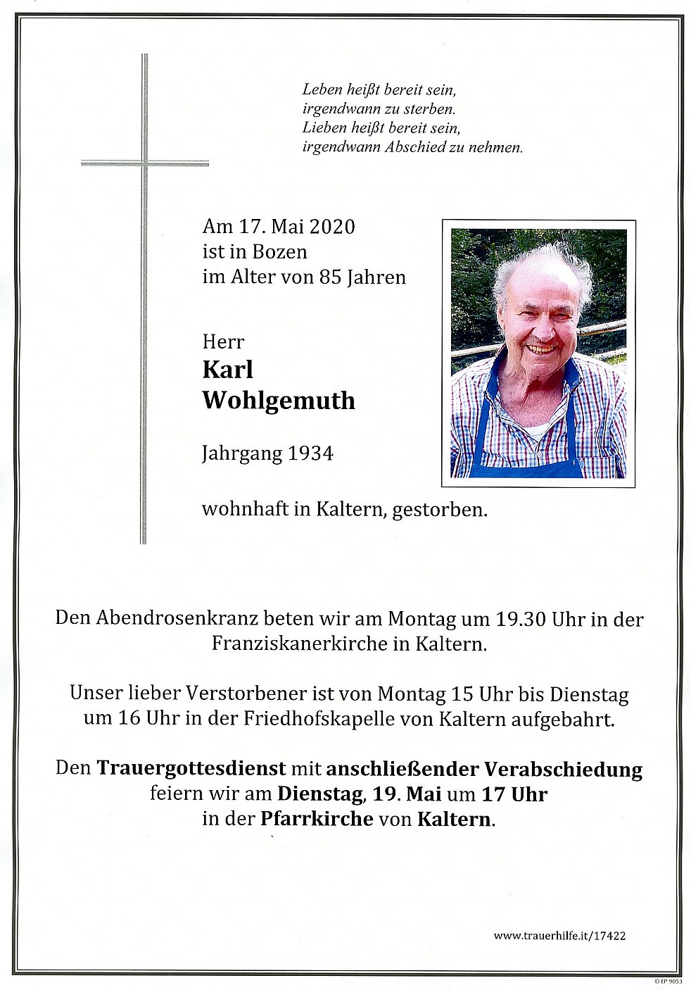 Karl ist von Montag 15 Uhr bis Dienstag 16 Uhr in der Friedhofskapelle von Kaltern aufgebahrt.