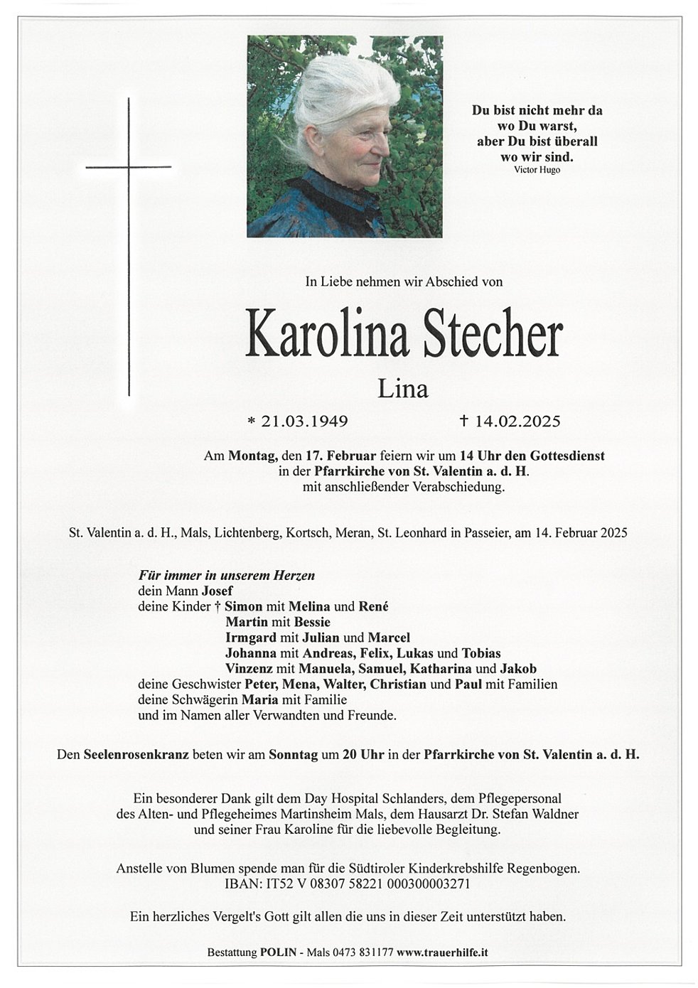 Anstelle von Blumen spende man für die Südtiroler Kinderkrebshilfe Regenbogen.