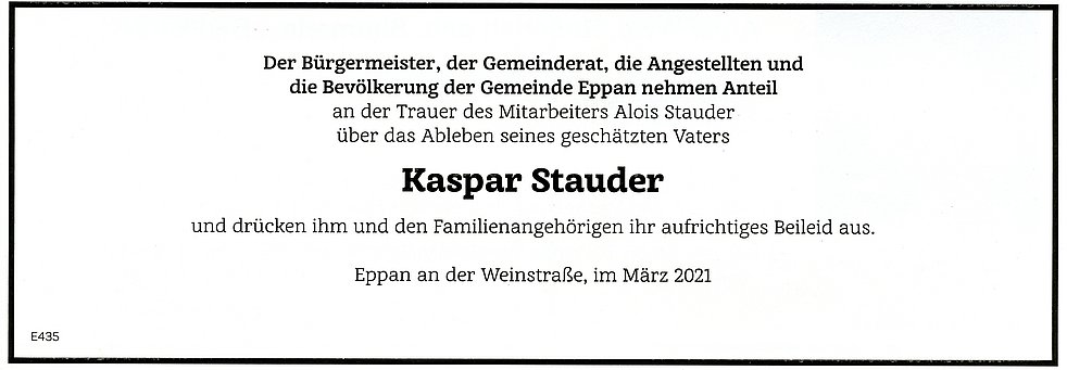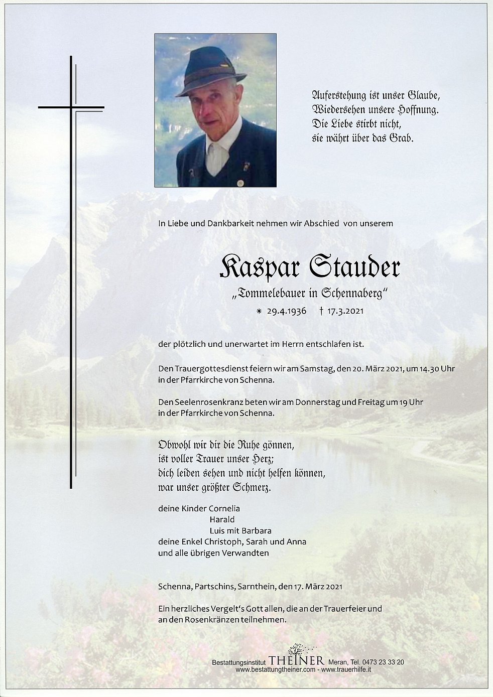 Den Trauergottesdienst feiern wir am Samstag, den 20. März 2021, um 14.30 Uhr in der Pfarrkirche von Schenna.