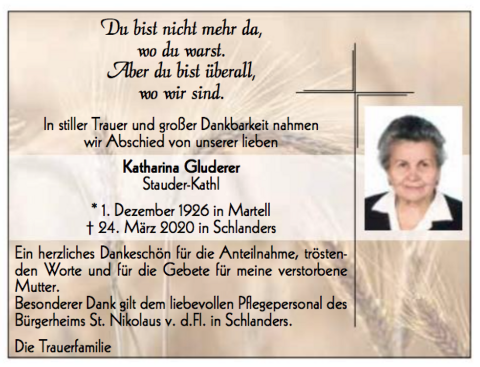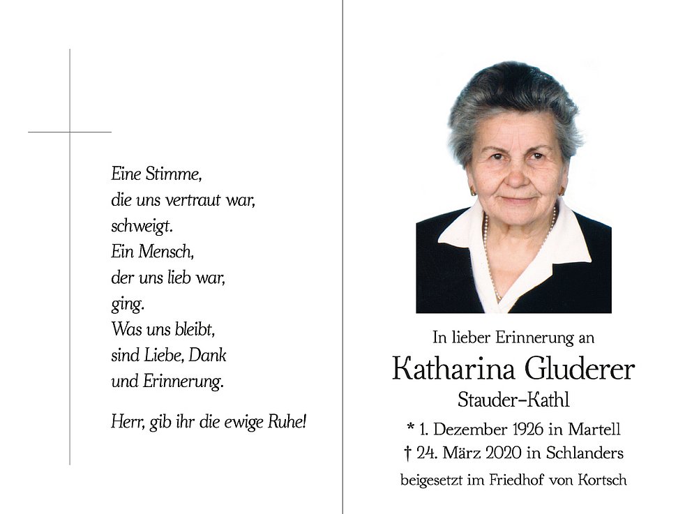 * 1. Dezember 1926 in Martell † 24. März 2020 in Schlanders