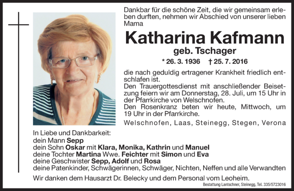 Donnerstag, 28. Juli, um 15 Uhr in der Pfarrkirche von Welschnofen.