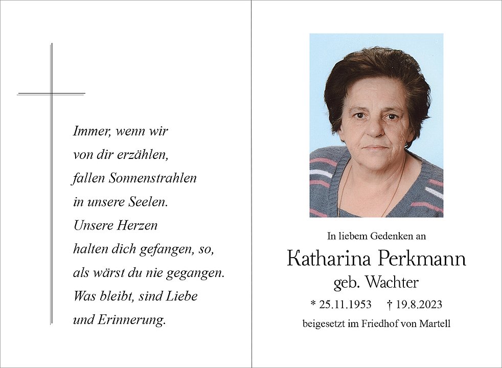 Und immer sind irgendwo Spuren deines Lebens,Gedanken und Bilder,Augenblicke und Gefühle ,die uns an dich erinnern. Touta du hosch a guats Herz besessn nun ruht es still, ober i wear di nia vergessn!! Mein herzlichstes Beileid allen Angehörige! Berni mit Familie