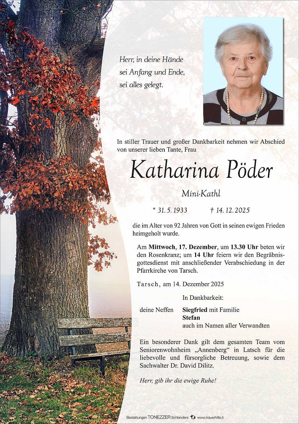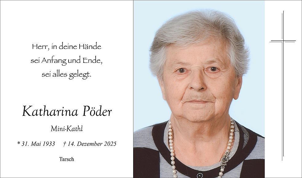 Am Mittwoch, 17. Dezember, um 13.30 Uhr beten wir den Rosenkranz; um 14 Uhr feiern wir den Begräbnisgottesdienst mit anschließender Verabschiedung in der Pfarrkirche von Tarsch.
