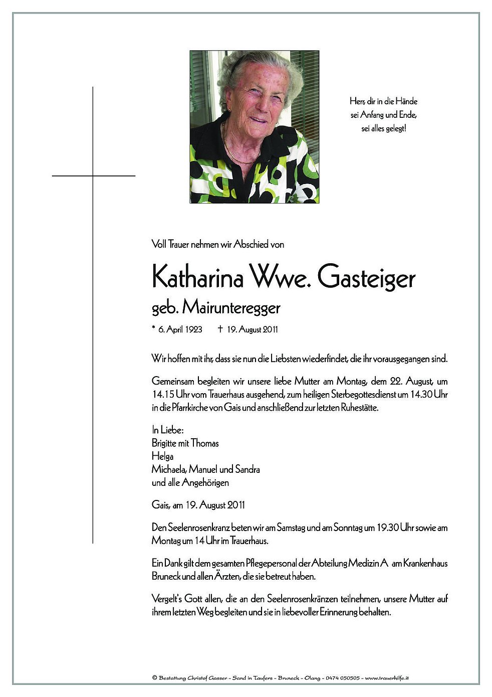 14.15 Uhr vom Trauerhaus ausgehend, zum heiligen Sterbegottesdienst um 14.30 Uhr in die Pfarrkirche von Gais und anschließend zur letzten Ruhestätte.