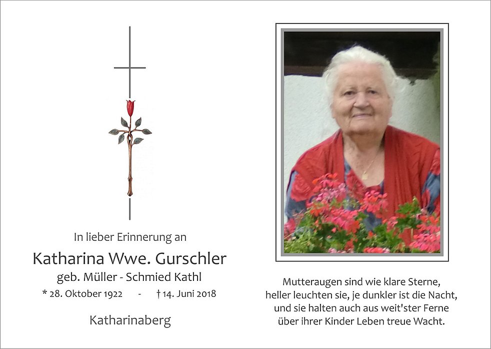 Anstatt Blumen auf das Grab zu legen, möge man für die Pfarrkirche von Katharinaberg spenden.
