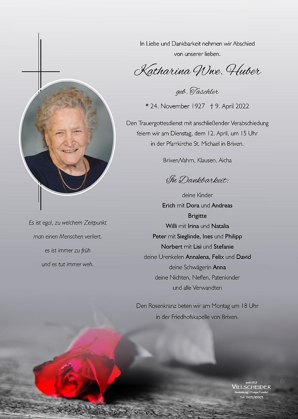 Tante Kathi hatte ein langes Leben und Du Brigitte, hast Dich bis zuletzt ganz liebevoll um sie gekümmert. Abschiednehmen von einer guten Mutter ist immer eine schmerzvolle Wegstrecke. Es bleibt jedoch die Erinnerung an den geliebten Menschen.