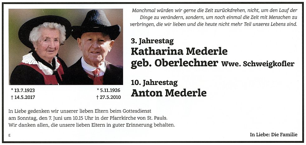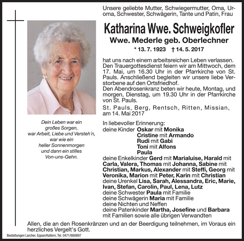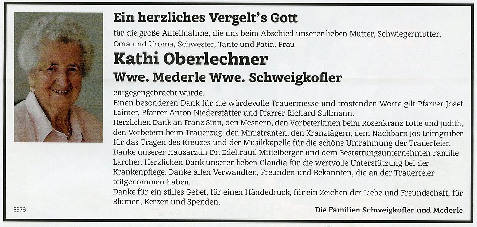 Katharina Wwe. Schweigkofler Wwe. Mederle geb. Oberlechner