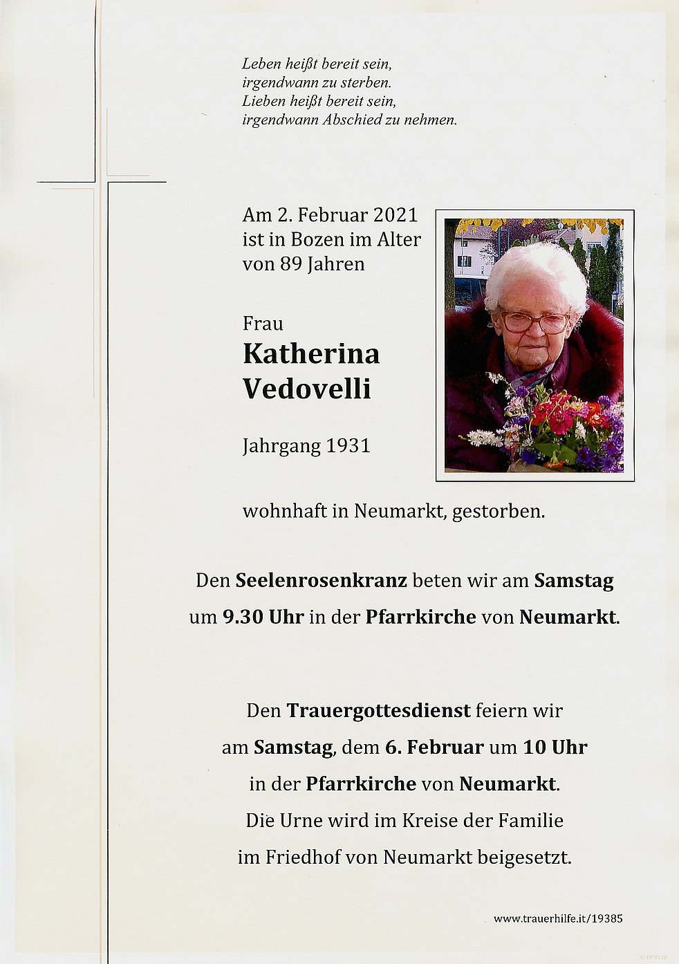 Den Trauergottesdienst feiern wir am Samstag, den 6. Februar um 10 Uhr in der Pfarrkirche von Neumarkt. Den Seelenrosenkranz beten wir am Samstag um 9.30 Uhr in der Pfarrkirche von Neumarkt.
