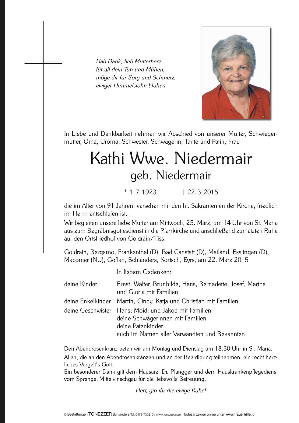 Wir begleiten unsere liebe Mutter am Mittwoch, 25. März, um 14 Uhr von St. Maria aus zum Begräbnisgottesdienst in die Pfarrkirche und anschließend zur letzten Ruhe auf den Ortsfriedhof von Goldrain/Tiss.