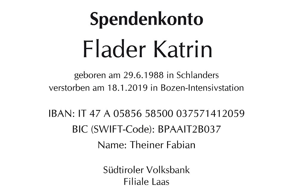 Spendenkonto Flader Katrin
