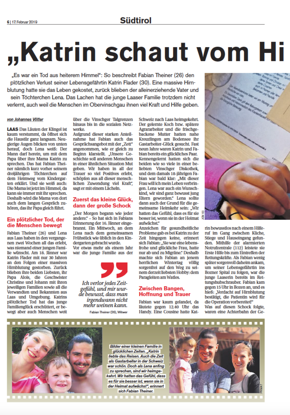 Ein besonderer Dank gilt dem Rettungsteam sowie der Abteilung Anästhesie und Intensivmedizin des Krankenhauses von Bozen für die fürsorgliche Betreuung.