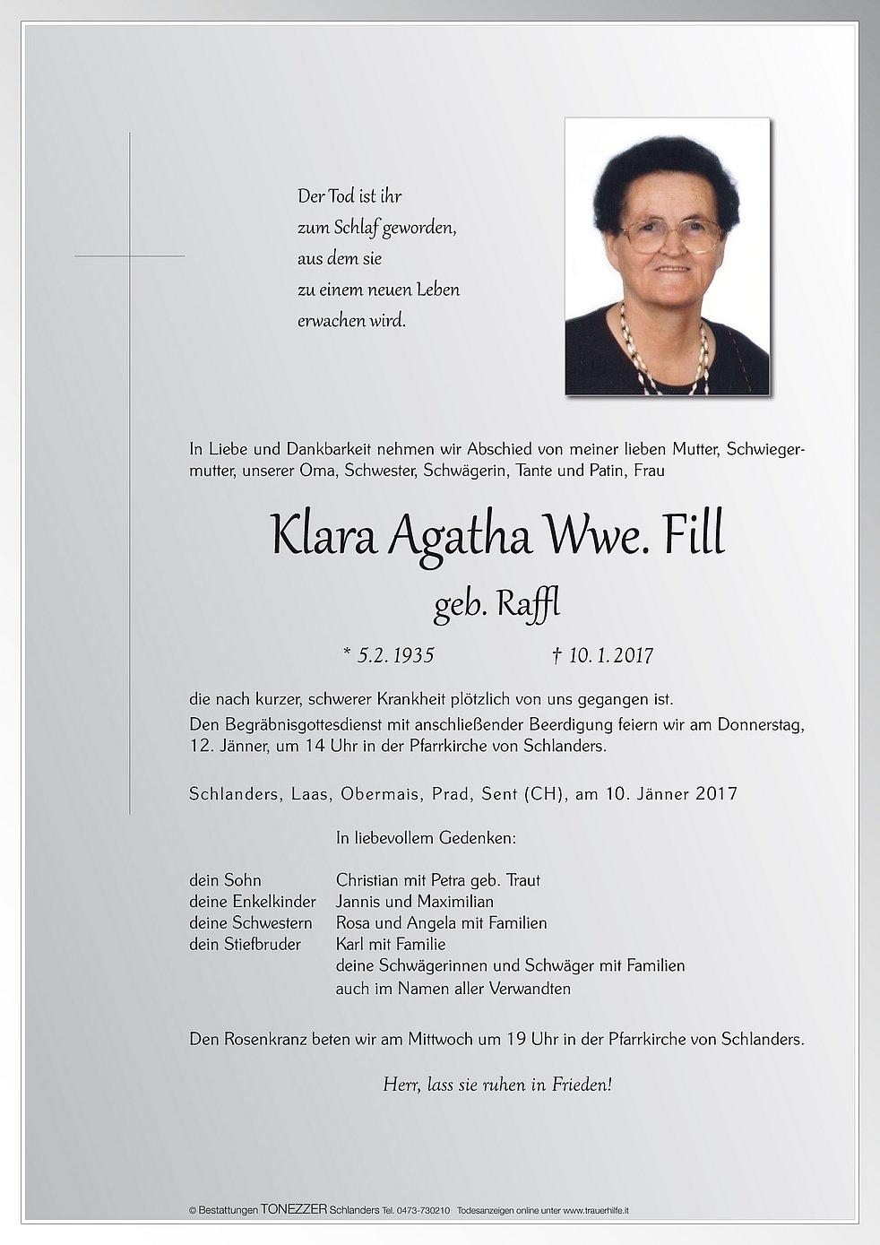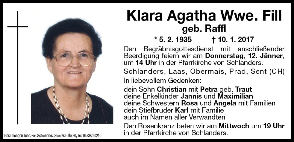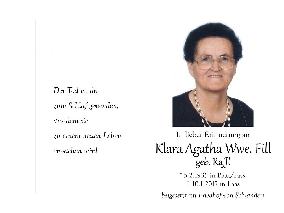 Klara Agatha Wwe. Fill geb. Raffl