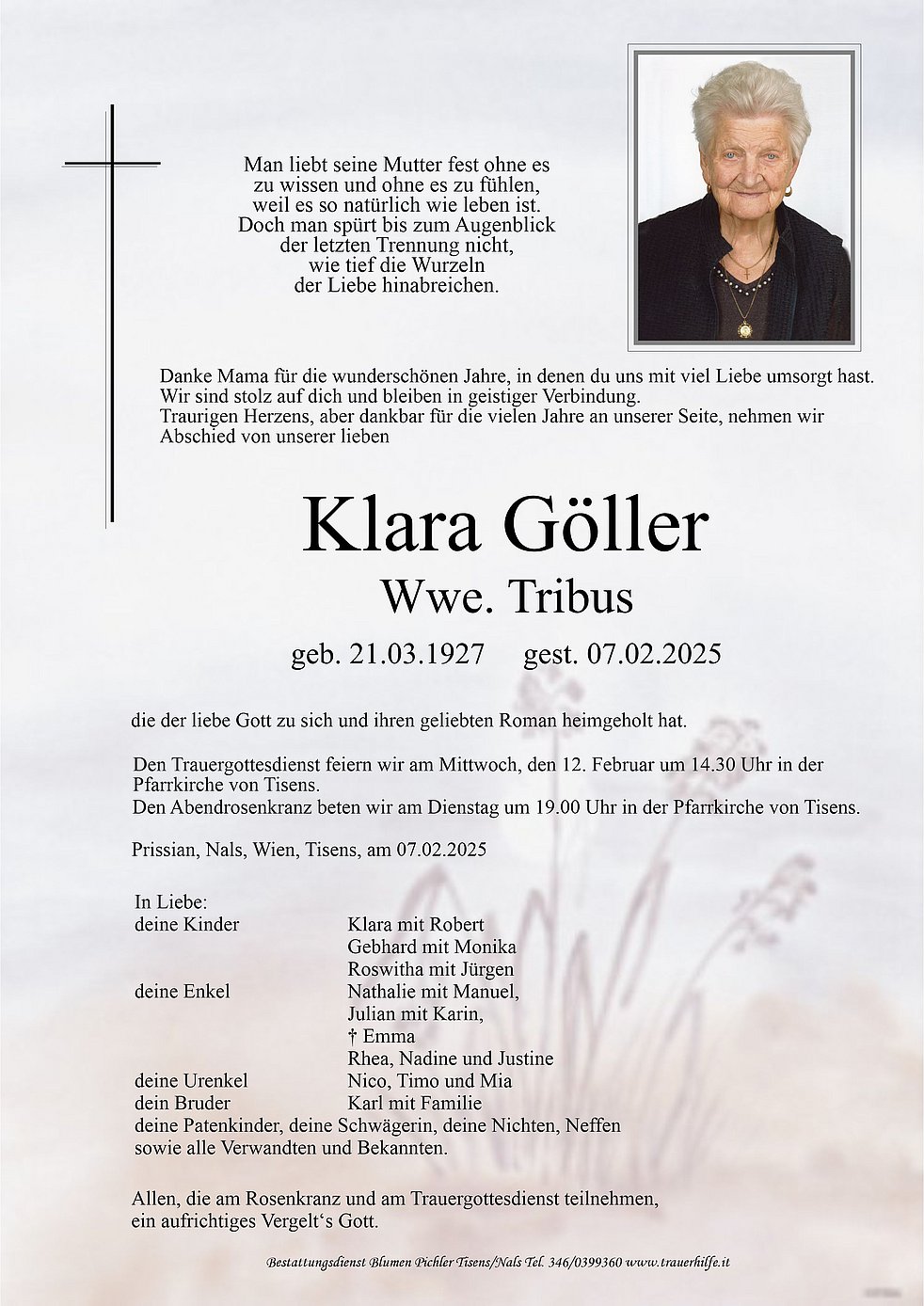Liebe "Oma Klara" miar werdn die nia vergessn