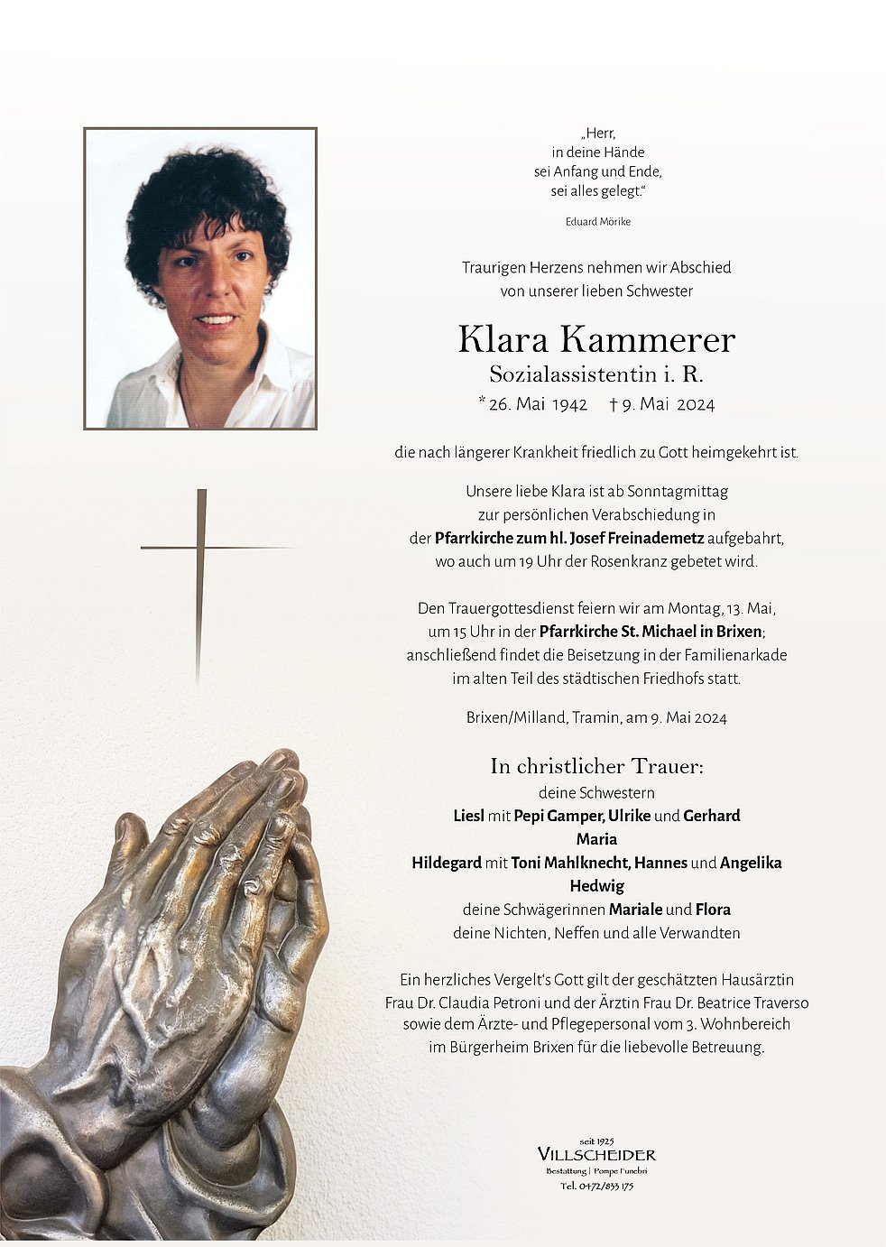Trauerfeier: 13.05. - 15:00 Uhr Brixen