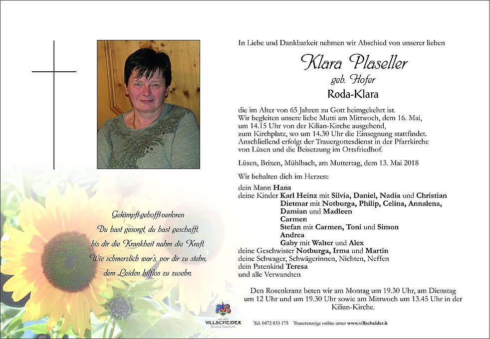 Wir begleiten unsere liebe Mutti am Mittwoch, dem 16. Mai,