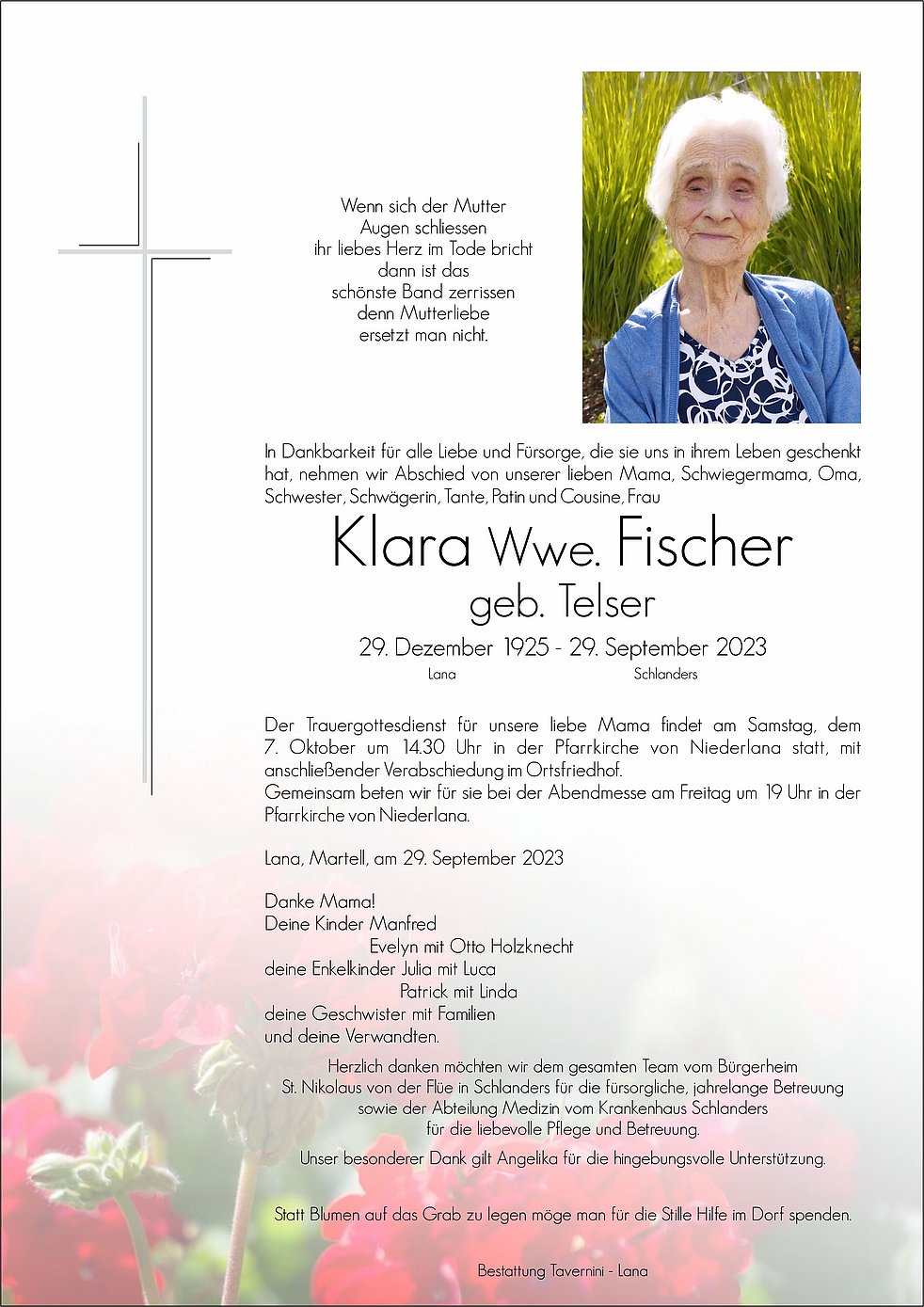 In herzlicher Anteilnahme und lieber Erinnerung an Klara
