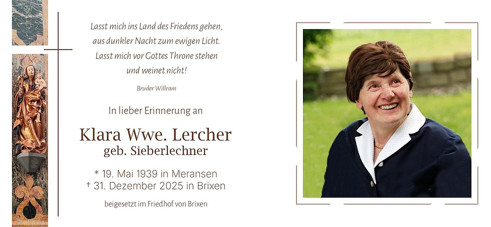 Trauerfeier: 05.01. - 10:00 Uhr Brixen